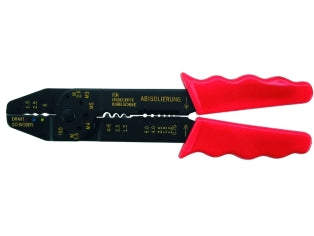 für isolierte und unisolierte Kabelvebindungen, mit Abisoliereinrichtung, Draht- und Schraubenabschneider, für Kabelquerschnitte 0,75-6 mm² und Endhülsen 1,5-2,5-4-6