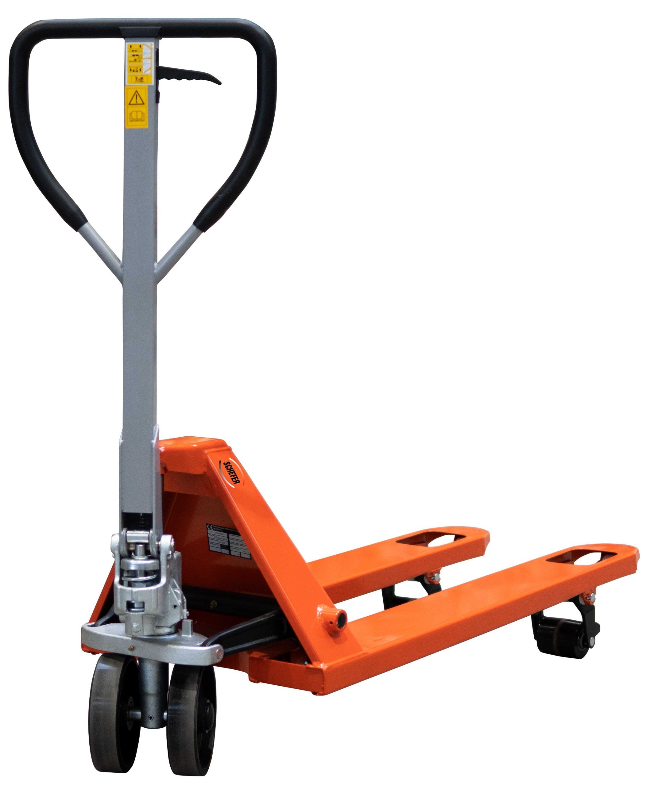 Bei Lasten bis 200 kg schafft er mit nur sechs Deichselschlägen eine Gabelhöhe von 200 mm, eine Palette kann mit sensationellen zwei Deichselschlägen angehoben und verfahren werden.