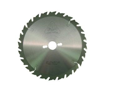 Beschreibung: Wechselzahn Brennholz-Kreissägeblatt, mit wechselseitig schrägen Zähnen, für Lang- und Querschnitte in allen Naturhölzern. Für Trennschnitte in Holz-Plattenwerkstoffen, auch einseitig furniert oder einseitig mit Kunststoff belegt.