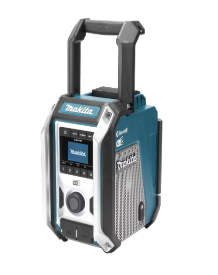 Robustes hochleistungsfähiges Bluetooth-Radio mit IP65-Gehäuseschutzklassifizierung. Läuft mit 12V max., 14,4V, 18V Li-Ion Schiebeakkus oder dem mitgelieferten Netzteil. Via Bluetooth einfach eine Verbindung mit einem Smartphone aufbauen und Musik abspielen. DAB+ Empfang, AUX-Anschluss und USB-Anschluss, zum Aufladen des Smartphones. Mit Subwoofer auf der Gehäuseunterseite sowie Mittel- und Hochtonlautsprecher an den Seiten für satten und klaren Sound.