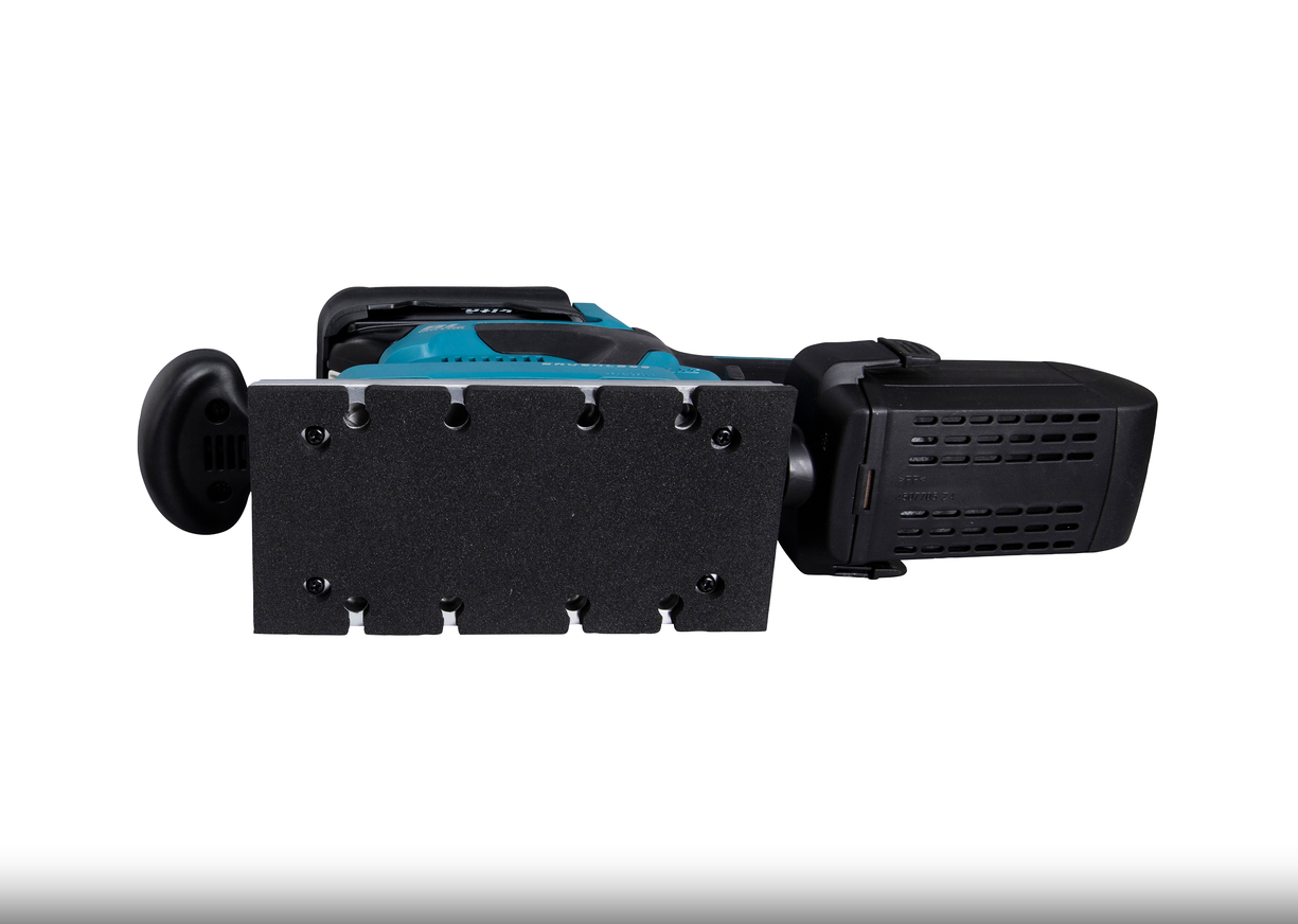 Der Akku-Schwingschleifer hat eine 93 x 185 mm große Grundplatte. Das Schleifpapier mit einer Größe von 93 x 228 mm wird mittels Spannververschluss befestigt. Mit drei einstellbaren Drehzahlstufen sind exzellente, gleichmäßige Oberflächenbearbeitungen von Holz, Metall oder Kunststoff möglich. Damit eignet sich die Maschine für verschiedenste Schleifarbeiten.