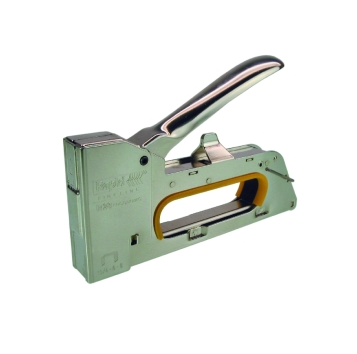 heftet mühelos auf allen Holzarten, Spanplatten, Sperrholz- und Hartfaserplatten, arbeitet mit enormer Durchschlagskraft völlig rückschlagfrei, Einhandbedienung im SB-Schaukarton