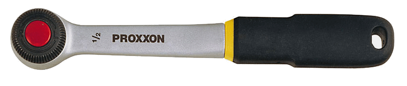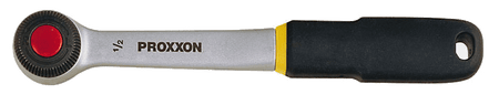 Mit Umschaltfunktion direkt auf dem Ratschenmechanismus. Mehrere der 52 Zähne rasten gleichzeitig ein und übertragen extrem hohe Drehmomente. Entriegelungs-Mechanismus: Lösen der Einsätze durch Knopfdruck. Kopf und Schaft aus einem Stück CrV-Stahl geschmiedet, 2x vernickelt und matt-verchromt. Griff aus öl- und säurefestem TPR (Thermoplastic Rubber) mit praktischer Bohrung zum Aufhängen.